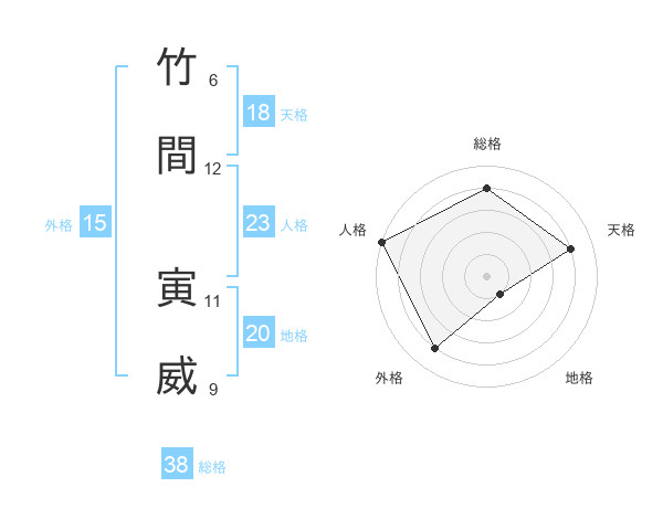 竹間 寅威さんを姓名の画数から五運を鑑定