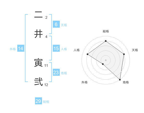 二井 寅弐さんを姓名の画数から五運を鑑定