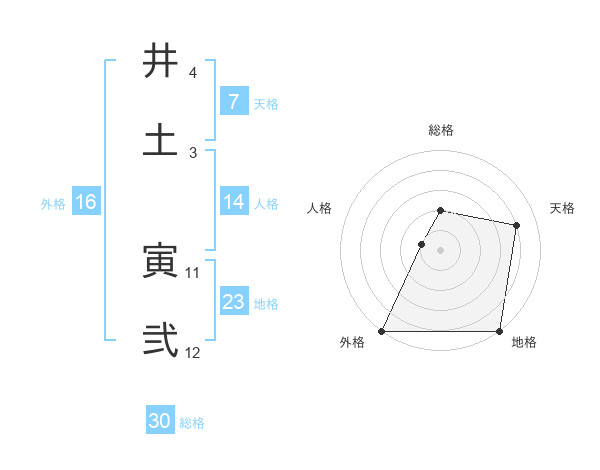 井土 寅弐さんの外格は16画の5点!