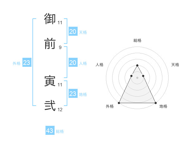 御前 寅弐さんの総格は43画の2点!