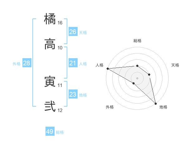 橘高 寅弐さんの天格は26画の2点!