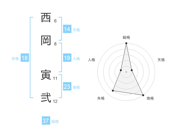 西岡 寅弐さんを姓名の画数から五運を鑑定