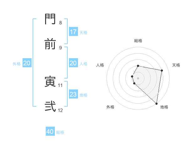 門前 寅弐さんの外格は20画の1点!