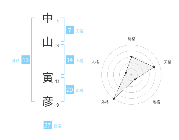 中山 寅彦さんの外格は13画の5点!