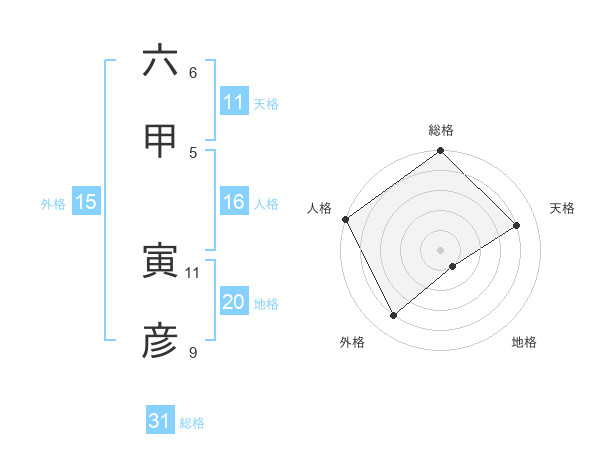 六甲 寅彦さんを姓名の画数から五運を鑑定