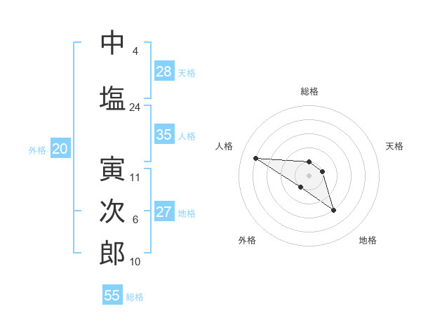中塩 寅次郎さんの天格は28画の1点!