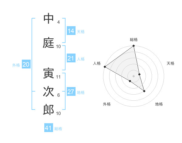 中庭 寅次郎さんを姓名の画数から五運を鑑定