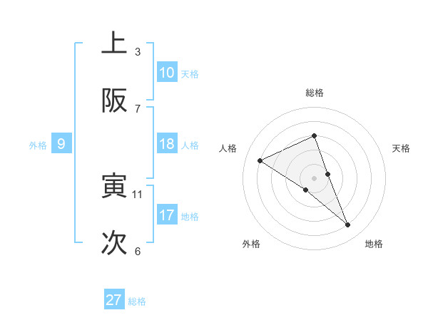 上阪 寅次さんを姓名の画数から五運を鑑定