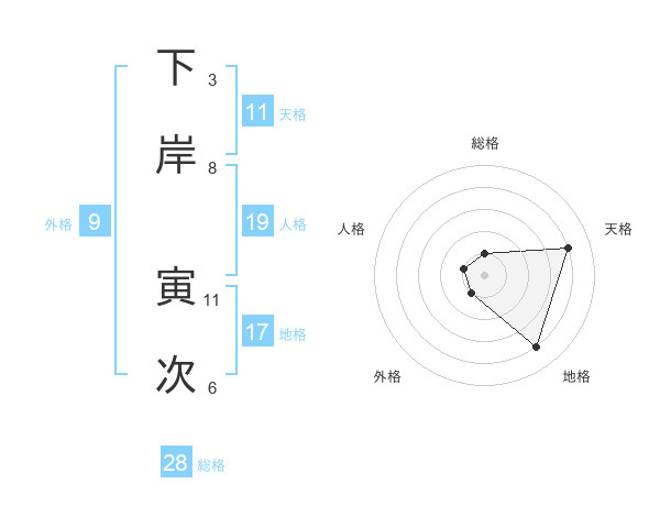 下岸 寅次さんの総格は28画の1点!
