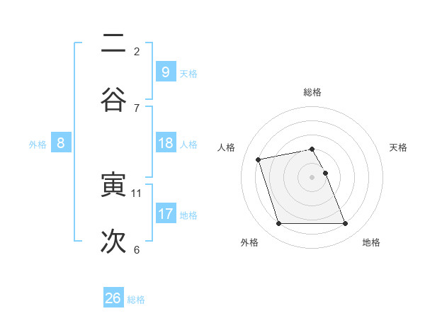 二谷 寅次さんを姓名の画数から五運を鑑定
