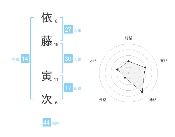 依藤 寅次さんを姓名の画数から五運を鑑定