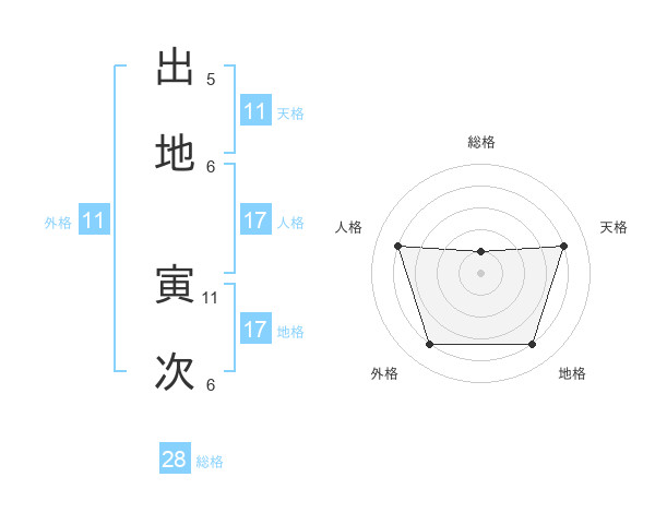 出地 寅次さんの地格は17画の4点!