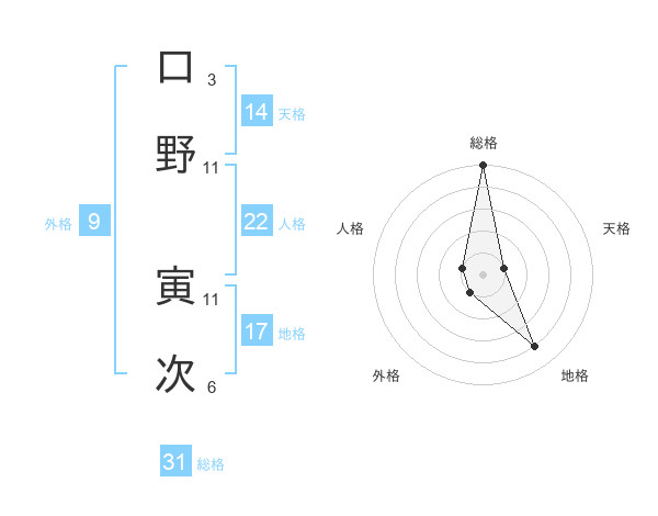 口野 寅次さんの総格は31画の5点!