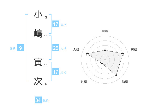 小嶋 寅次さんを姓名の画数から五運を鑑定
