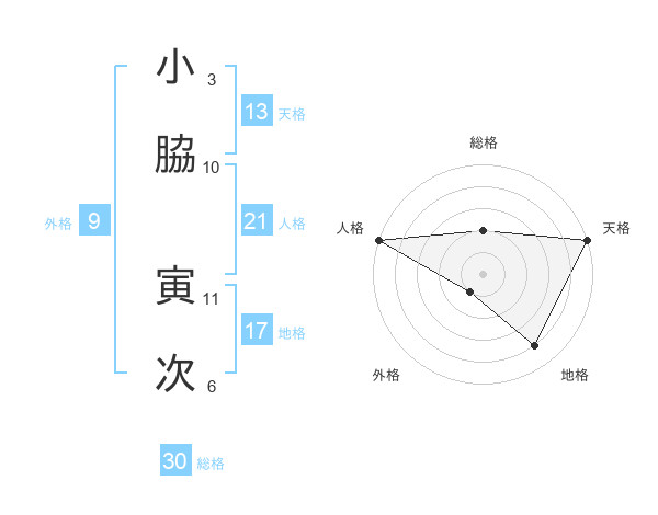 小脇 寅次さんの天格は13画の5点!