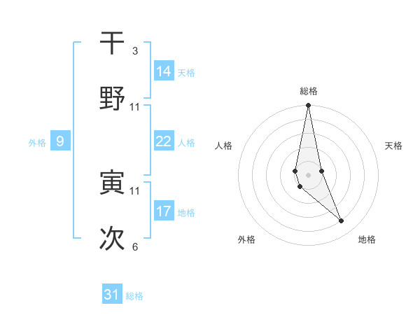 干野 寅次さんの総格は31画の5点!