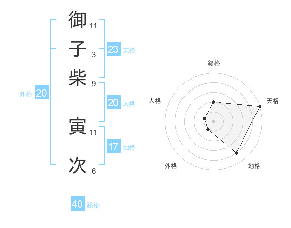御子柴 寅次さんを姓名の画数から五運を鑑定
