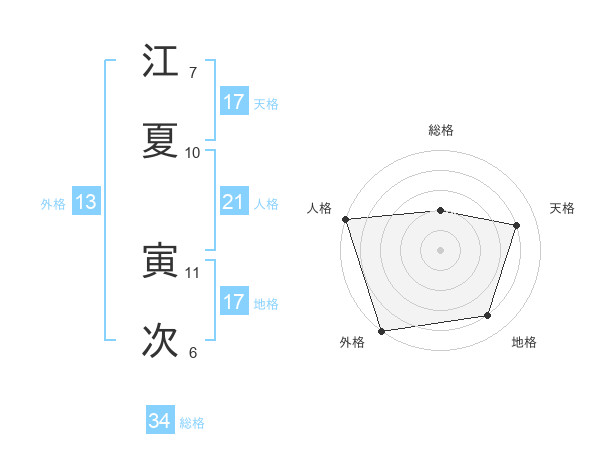 江夏 寅次さんの総格は34画の2点!