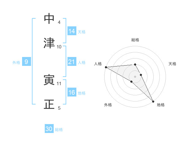 中津 寅正さんの天格は14画の1点!