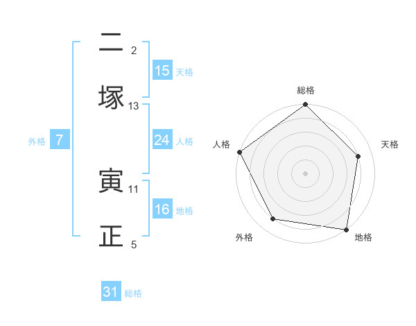 二塚 寅正さんを姓名の画数から五運を鑑定