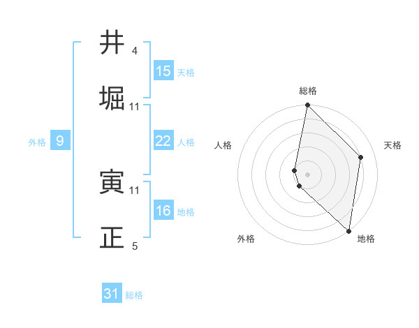井堀 寅正さんの総格は31画の5点!