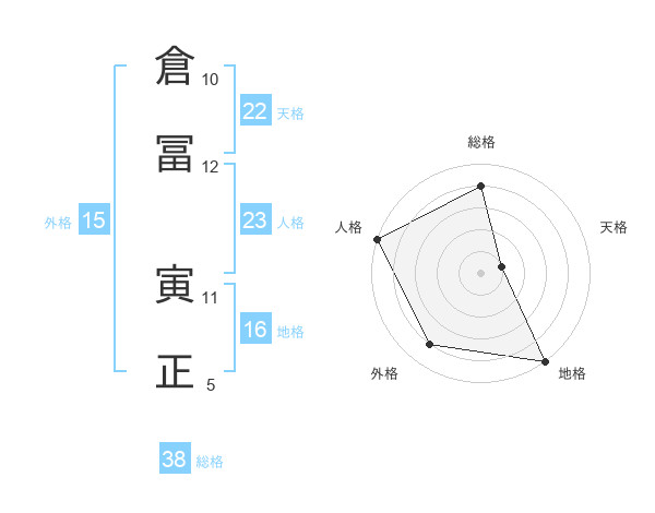 倉冨 寅正さんの天格は22画の1点!
