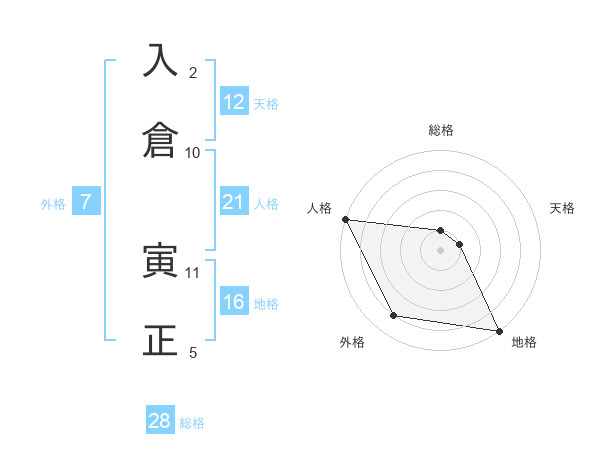 入倉 寅正さんの総格は28画の1点!
