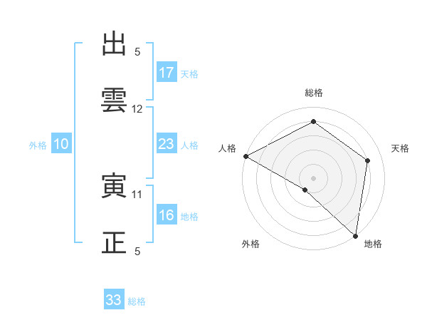 出雲 寅正さんを姓名の画数から五運を鑑定