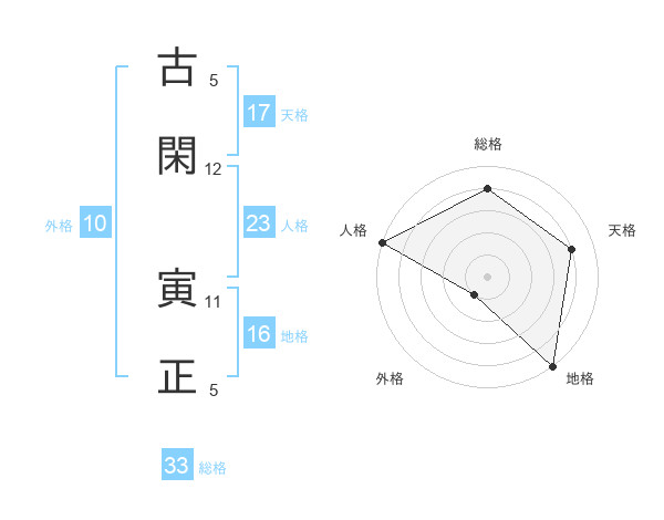 古閑 寅正さんを姓名の画数から五運を鑑定