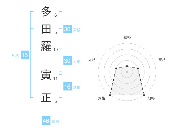 多田羅 寅正さんを姓名の画数から五運を鑑定