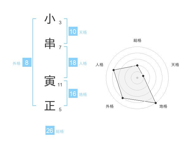 小串 寅正さんの総格は26画の2点!
