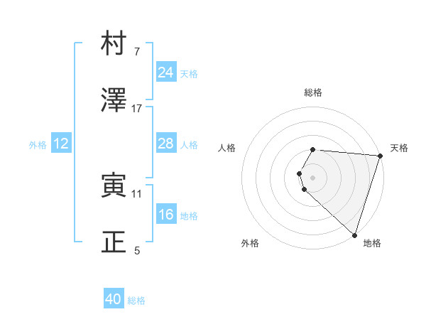 村澤 寅正さんの天格は24画の5点!