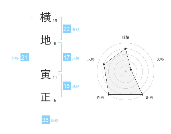横地 寅正さんの総格は38画の4点!