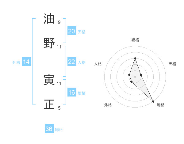 油野 寅正さんの天格は20画の1点!