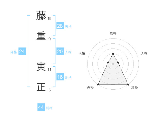 藤重 寅正さんを姓名の画数から五運を鑑定