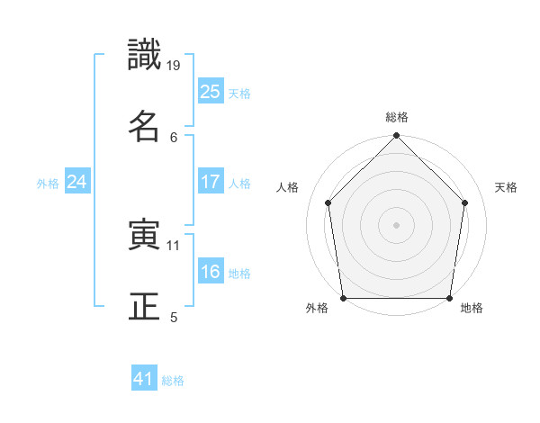 識名 寅正さんの総格は41画の5点!