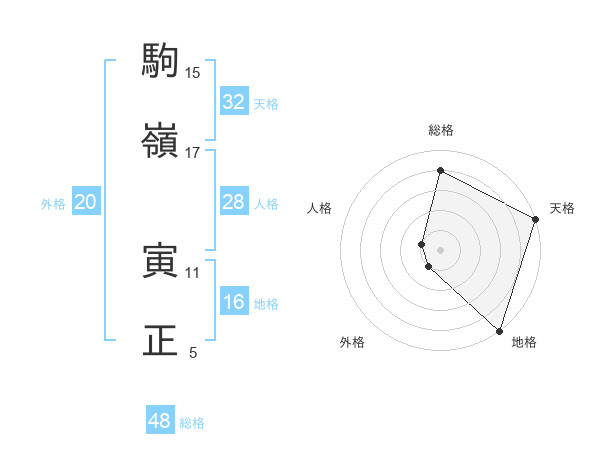 駒嶺 寅正さんを姓名の画数から五運を鑑定