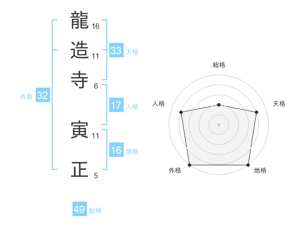 龍造寺 寅正さんの外格は32画の5点!