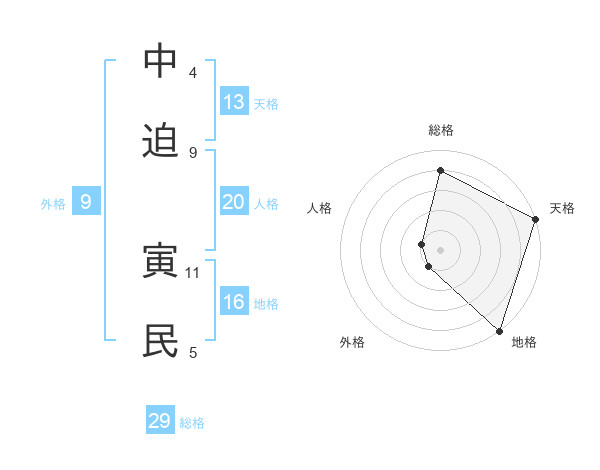 中迫 寅民さんの天格は13画の5点!