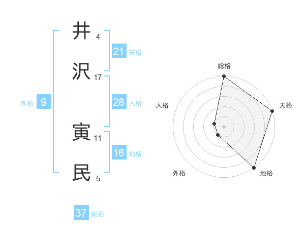 井沢 寅民さんの総格は37画の5点!