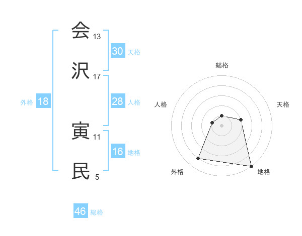 会沢 寅民さんを姓名の画数から五運を鑑定