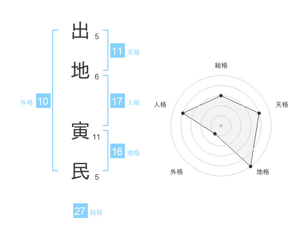 出地 寅民さんの総格は27画の3点!