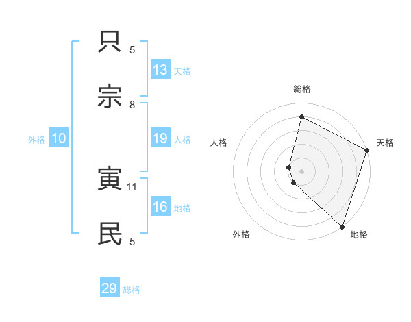 只宗 寅民さんを姓名の画数から五運を鑑定