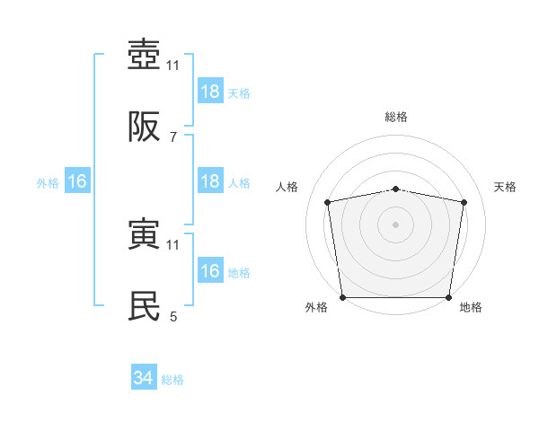 壺阪 寅民さんの天格は18画の4点!
