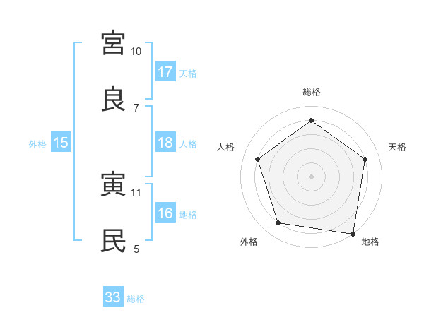 宮良 寅民さんの総格は33画の4点!