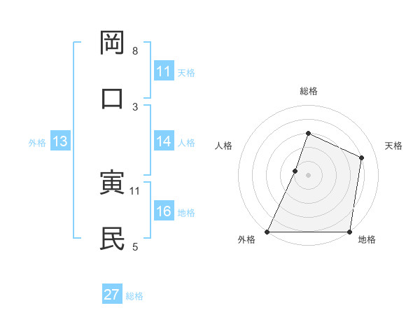 岡口 寅民さんの総格は27画の3点!