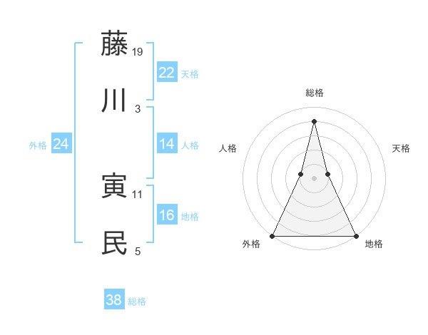 藤川 寅民さんの総格は38画の4点!