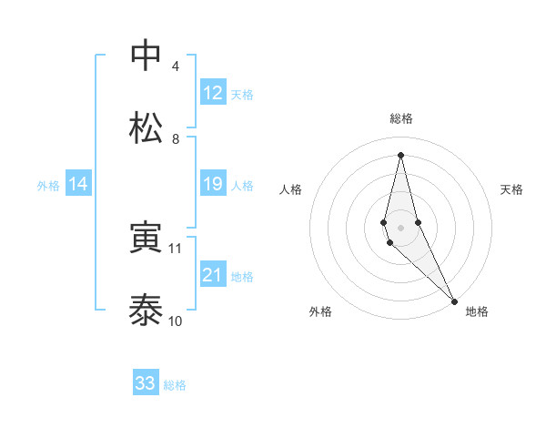 中松 寅泰さんの総格は33画の4点!