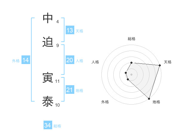 中迫 寅泰さんの天格は13画の5点!