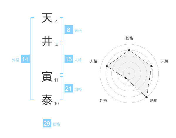 天井 寅泰さんの総格は29画の4点!